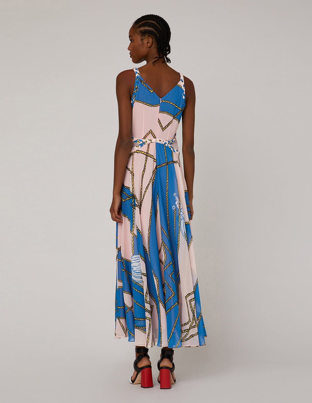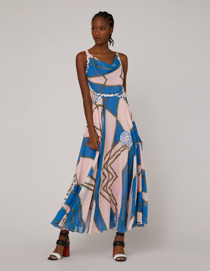 MARYLING DRAPE NECK BRAID GEORGETTE PRINT MAXI-DRESS