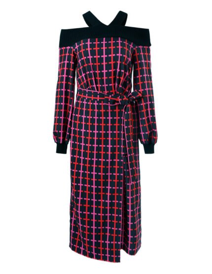 MARYLING V-NECK KNIT SPLICED CHECKED DRESS Original price was: $550.00.Current price is: $453.71.