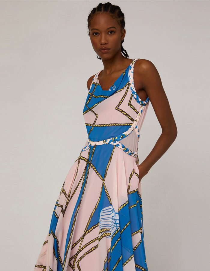 Be the first to review “MARYLING DRAPE NECK BRAID GEORGETTE PRINT MAXI-DRESS”